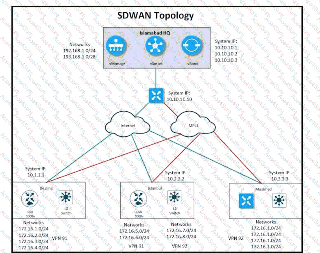 Refer to the exhibit The Cisco SD-WAN network is configured with a default full-mesh topology. Islamabad HQ and Islamabad WAN Edges must be used as the hub sites. Hub sites MPLS TLOC must be preferred when forwarding FTP traffic based on a configured SLA class list. Which policy configuration does the network engineer use to call the SLA class and set the preferred color to MPLS?