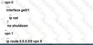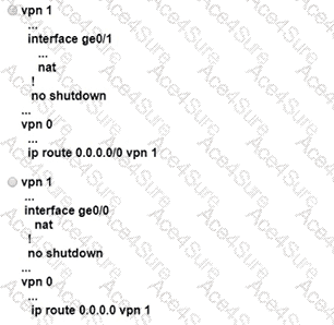 Refer to the exhibit Which configuration sets up direct Internet access for VPN 1?
