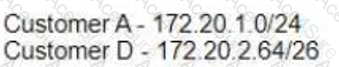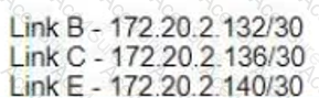 Refer to the exhibit An architect is designing an IPv4 plan using the 172 20 0.0/16 network The design must maximize the number of subnets and minimize the number of wasted IP addresses In addition, the plan must allocate a subnet to these customers and links