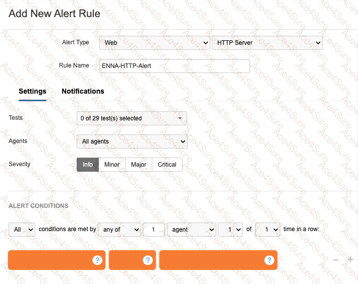 In theDesigning and Implement7ing Enterpr8ise Network Assurance (300-445 ENNA)framework, configuring effective alert rules is critical for distinguishing between standard network noise and actionable application-layer failures. ForWeb - HTTP Servertests, ThousandEyes allows engineers to monitor both network-level metrics (like Connect time) and application-level indicators (like HTTP response codes).