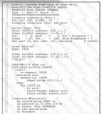 Options A and B are ELAM (embedded logic analyzer) filters used only for packet capture and do not resolve the forwarding issue.