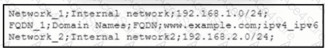 Refer to the exhibit. An engineer must import three network objects into the Cisco Secure Firewall Management Center by using a CSV file. Which header must be configured in the CSV file to accomplish the task?
