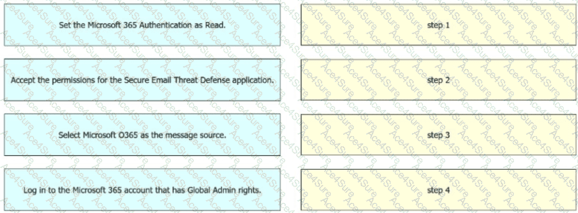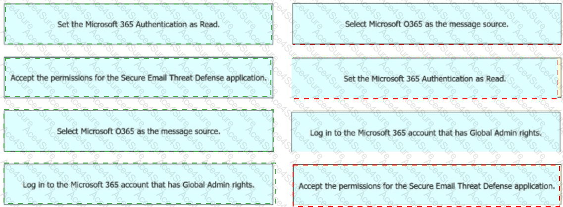 An engineer must configure the message source when integrating Cisco Secure Email Threat Defense with Microsoft 365. The integration must allow visibility but not remediation. Drag and drop the actions from the left into sequence on the right to meet the requirement.