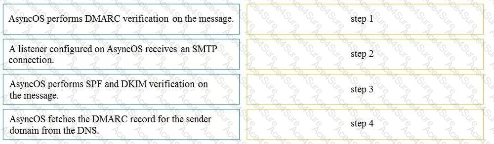 Drag and drop the AsyncOS methods for performing DMARC verification from the left into the...