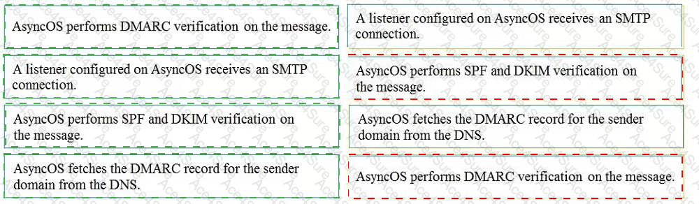 Drag and drop the AsyncOS methods for performing DMARC verification from the left into the correct order on the right.