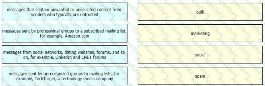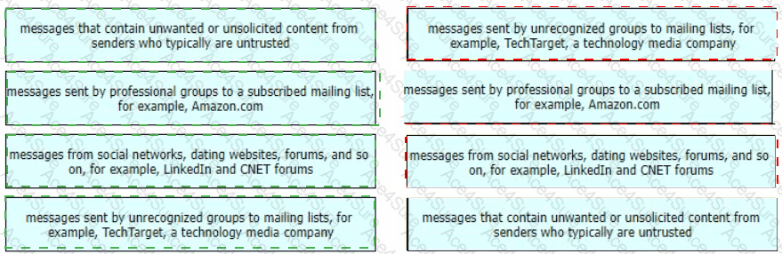 Drag and drop the graymail descriptions from the left onto the verdict categories they belong to on the right.