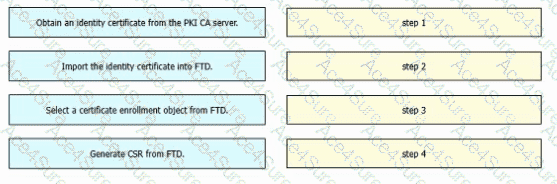 An engineer must configure certificate-based authentication in a cloud-delivered Cisco Secure Firewall Management Center. Drag and drop the steps from left to right to manually enroll certificates on a Cisco Secure Firewall Threat Defense Virtual device.