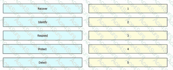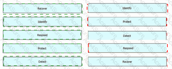 Drag and drop the five core functions from the left into the order defined by the NIST Cyber security Framework on the right.