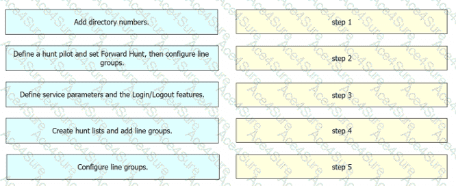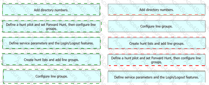 A customer wants to configure their team of 10 agents to answer incoming calls to a common central number. The phone for each team member must ring in sequence and ring four times before moving to the next member's phone. Drag and drop the steps from the left into the order on the right to make this happen.