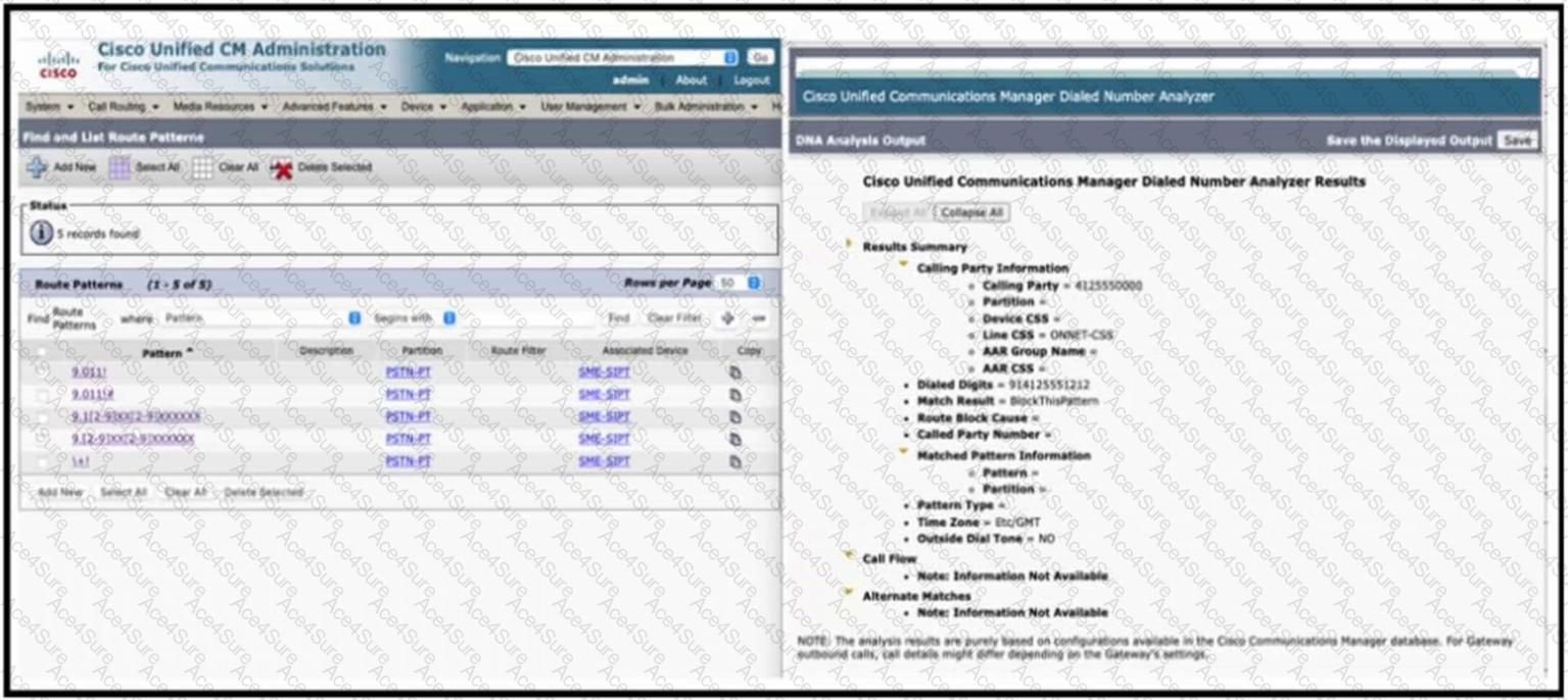 Refer to the exhibit. A collaboration engineer is troubleshooting an issue where a user of a Cisco UCM IP phone reports failed calls when trying to dial out to the PSTN. Which action resolves the issue?