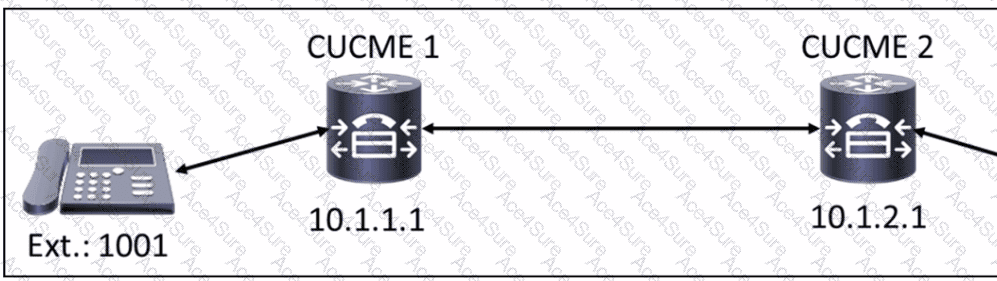 Refer to the exhibit. A company deploys an additional instance of Cisco UCME named CUCME 2 in a branch office. Phones in the main office are register of Unified CME named CUCME 1. Phones in the branch office are registered with their extension to CUCME 2. The engineer needs to configure CUCME the branch office using an 8-kbps codec. Which configuration should be applied to CUCME 1?