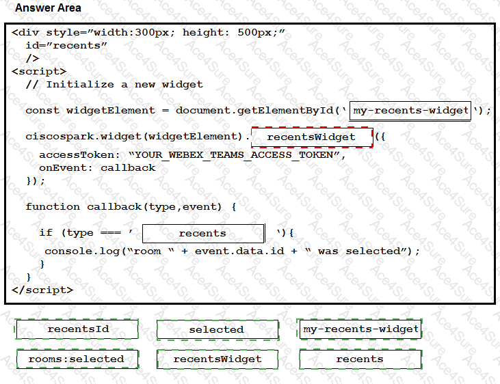 Drag and drop the code to create a Webex Teams Recents Widget in an existing HTML page. Not all items are used.