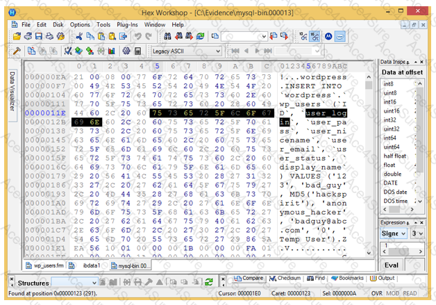Analyze the hex representation of mysql-bin.000013 file in the screenshot below. Which of the following will be an inference from this analysis?