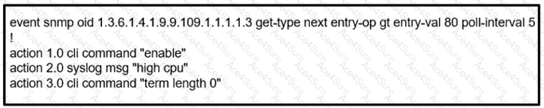 Refer to the exhibit. An engineer must create a script that appends the output of the show process cpu sorted command to a file.