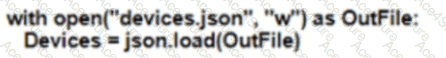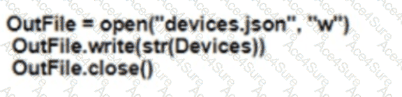 Refer to the exhibit. Which Python snippet stores the data structure of the device in JSON format?