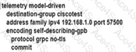 An engineer is developing a configuration script to enable dial-out telemetry streams using gRPC on several new devices. TLS must be disabled on the devices. Which configuration must the engineer apply on the network?