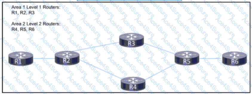 Refer to the exhibit A network engineer is in the process of implementing IS-IS Area 1 and Area 2 on this network to segregate traffic between different segments of the network The hosts in the two new areas must maintain the ability to communicate with one another In both directions. Which additional change must be applied?