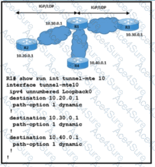 Refer to the exhibit. An engineer must Implement a traceroute operation to verity the R1 point-to-multipoint LSP connections. The traceroute operation must return all labels and hop-by-hop IP addresses for destinations 10.20.0.1. 10.30.0.1, and 10.40.0.1. and the maximum number of hops is 4. Which command must be executed to meet the requirements?