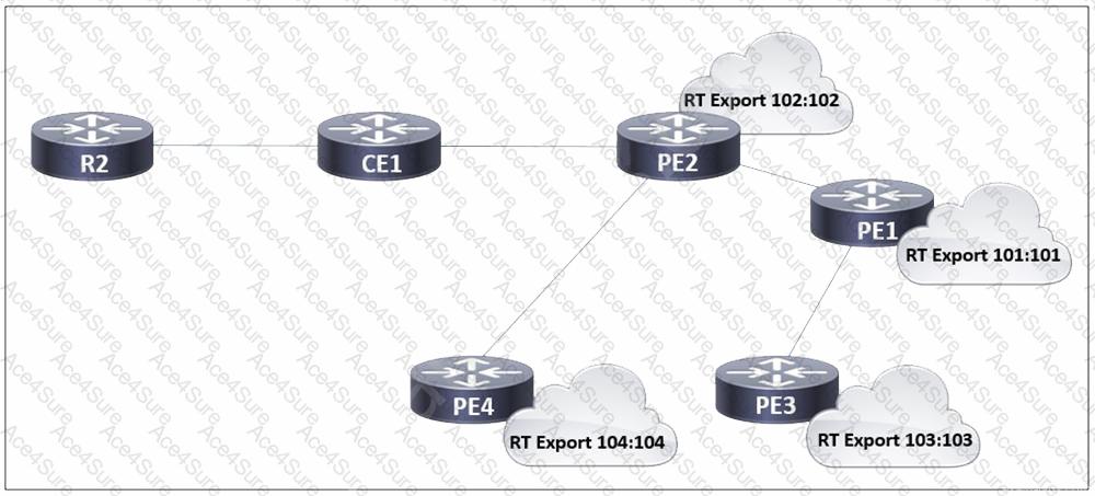 Refer to the exhibit. In the service provider network, routers PE1, PE2, and PE4 have access to the internet and provide access to customer networks. Router PE3 is used for access to other customer systems. In accordance with a new SLA, an engineer is updating settings on this network so that router CE1 accesses the internet via PE1 instead of PE2. Which two tasks must the engineer perform to complete the process? (Choose two.)