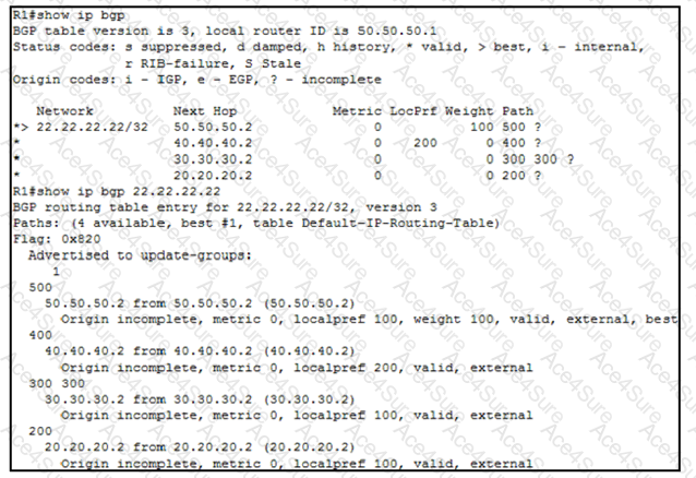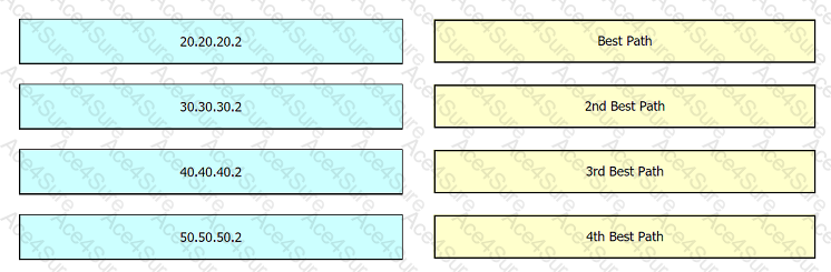 An engineer wants to determine which paths are best, second best, third best, and fourth best. Drag and drop the peer addresses on the left to the corresponding BGP best-path selection order on the right.