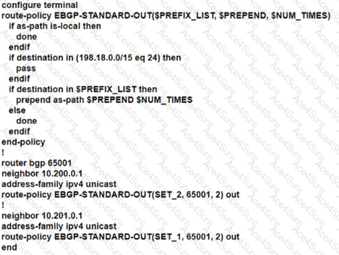 • Reachability to 198.18.100.0/24 must be preferred via the EDGE-1 connection.