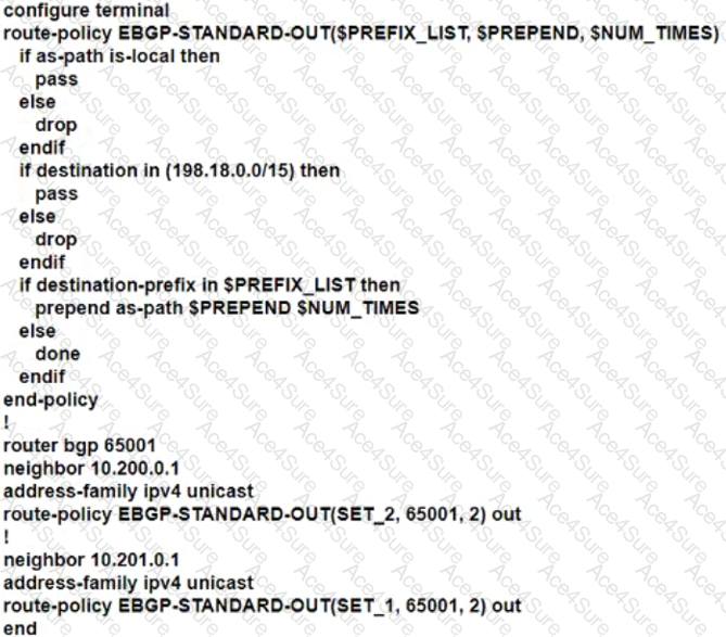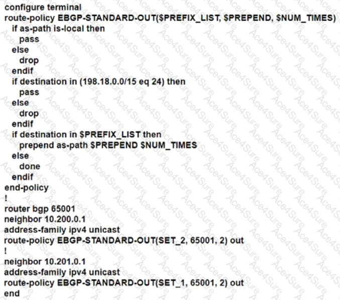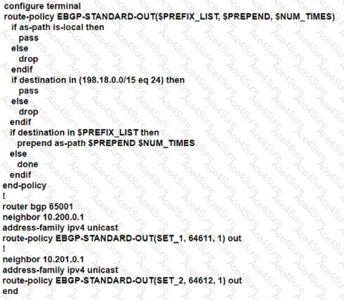 • Advertise locally-originated routes and /24 prefixes assigned within the 198.18.0.0/15 range. All other prefixes must be dropped.
