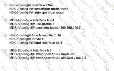 An engineer implements an environment with multiple traffic types on a consolidated I/O link between Cisco Nexus 9000 Series Switch and MDS 9000 Series Switch The configuration must meet these requirements: