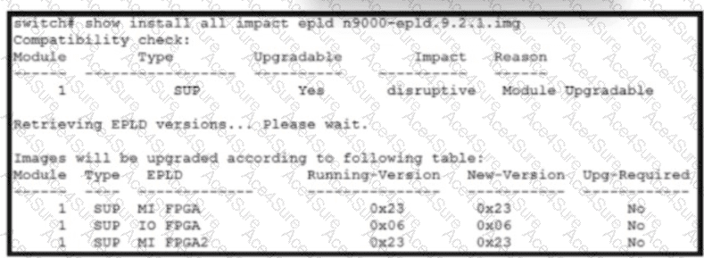 Refer to the exhibit A network engineer plans to upgrade the current software images of a Cisco Nexus switch What is the impact of starling the EPLD upgrade?
