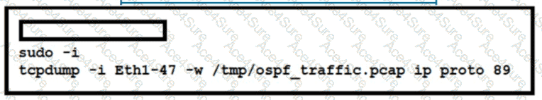 snapshot of OSPF-related traffic on a specific Cisco NX-OS switch port. For security reasons, the capture must be taken using an embedded container that is already deployed on the Cisco Nexus device. Which command completes the script?