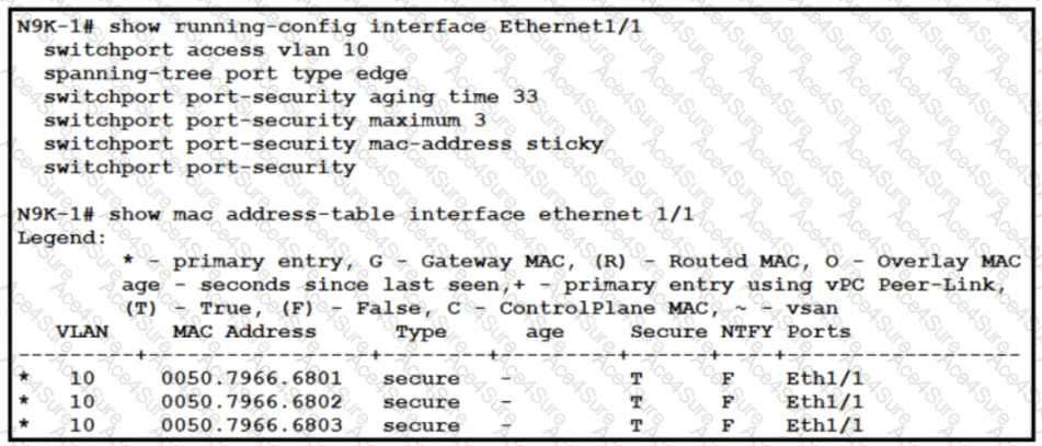 Refer to the exhibit. An engineer configures port security on a Cisco Nexus 9000 Series Switch. The requirement is to prevent any newly learned MAC addresses from forwarding traffic on the interface. Also, the already learned MAC addresses must not be affected by the changes. Which configuration meets these requirements?