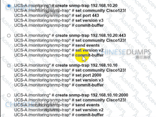 Refer to the exhibit. The network management system that is located at 192.168.10.10 and port 2000 must receive traps from the Cisco UCS Manager called UCSM. The community name is Cisco123! and the SNMP version must be the most secure.