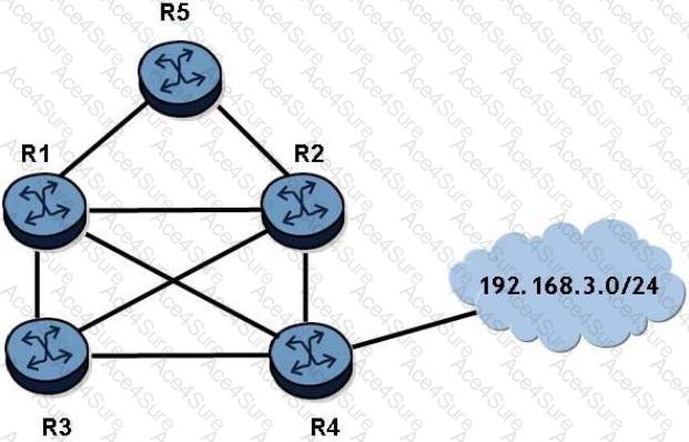 OSPF is operational on all links in the network diagram, all links are the same cost, and all routers are configured with an ECMP value of 4. Router R4 advertises the prefix 192.168.3.0/24 into OSPF.