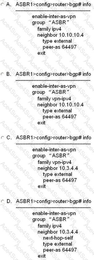 For the inter-AS model B VPRN, which of the following is the correct BGP configuration on ASBR1?