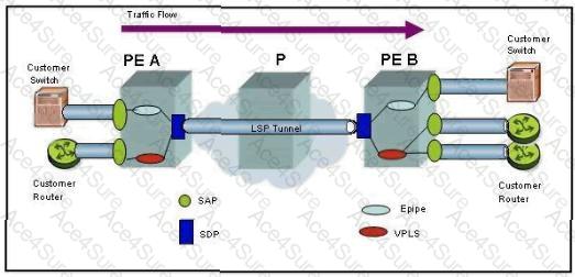 Click the exhibit button below. The service provider has both a VLL (epipe) service and a VPLS, as shown in the diagram below.