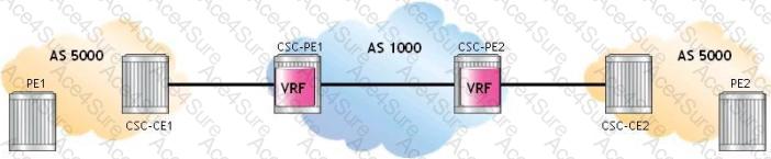 For the Carrier Supporting Carrier (CSC) VPRN, which routes are advertised between CSC-CE1 andCSC-PE1?