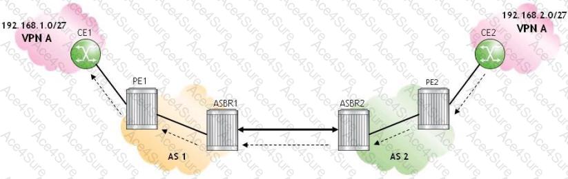 For the inter-AS model A VPRN, which of the following is FALSE when CE2 sends an IP packet to 192.168.1.1?