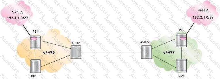 For the inter-AS model C VPRN, which of the following is FALSE when an IP packet is sent from 192.1.1.1 to 192.2.1.1?