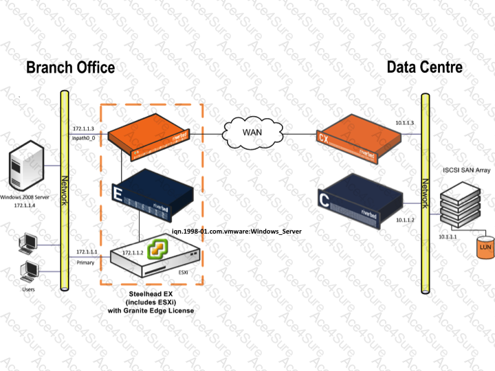 Refer to the exhibit. Customer is attempting to implement the following Granite Design, but for some reason the Windows Server in the Branch never manages to discover a LUN. Which of the following Granite configuration steps that they implemented would cause the problem? (Assume the basic networking is correct)