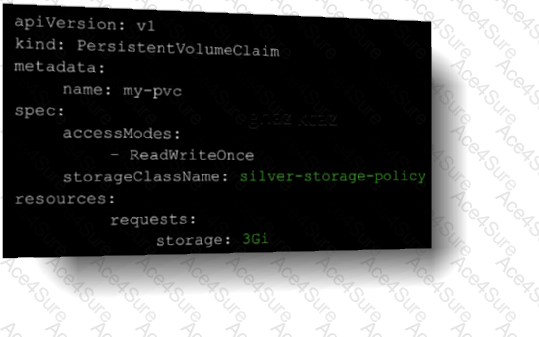 The Gold storage policy has been assigned to the Web namespace, and the DevOps engineer wants to place a persistent volume for the Web application in the Gold storage class.
