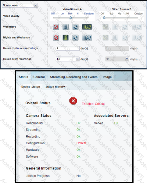After you configure a new Cisco IP camera and save the configuration, you notice that under the Device Status tab for the same camera, Overall Status is Enabled: Critical. Despite the status, you can view the camera image and stream the video. What is causing the Critical configuration status?