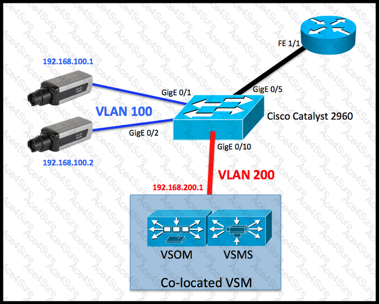 Cameras and a Cisco VSM server are connected to a Layer 2 switch. Which three steps will allow the Cisco VSM servers to see video traffic from the two IP cameras? (Choose three.)