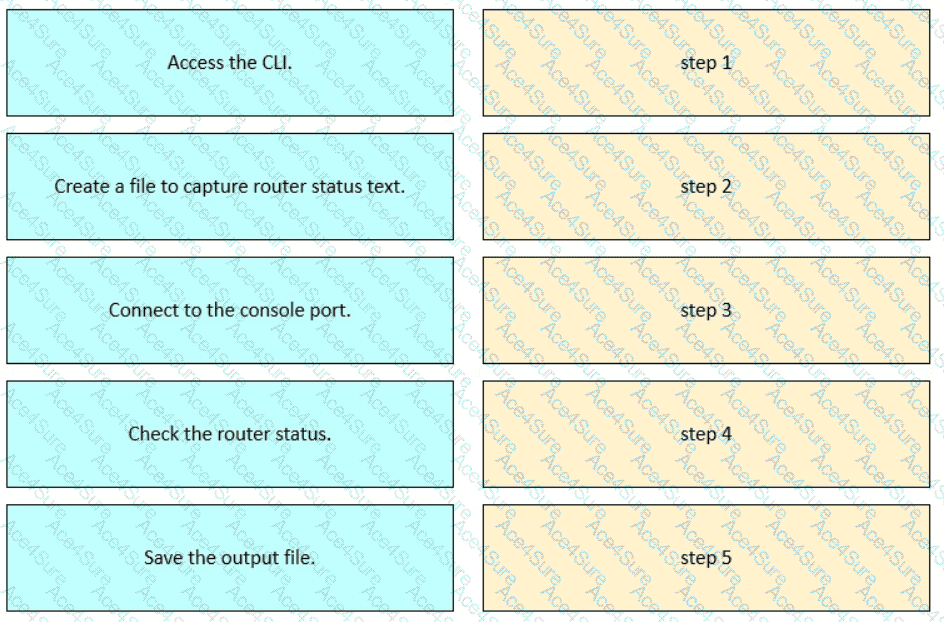 Drag and drop the steps from the left into order to capture the status of a Cisco device.