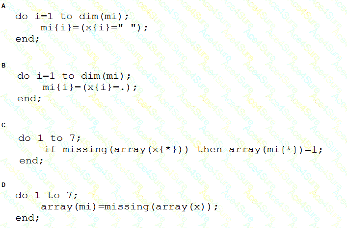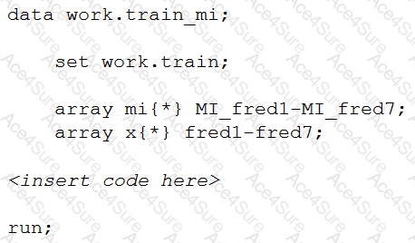 The following code is used to create missing value indicator variables for input variables, fred1 to fred7.
