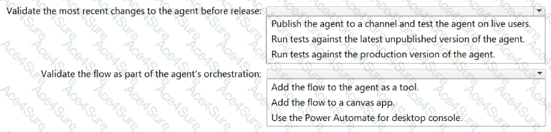 The question also requires that the Power Automate desktop flow be validated as part of the agent ' s orchestration .