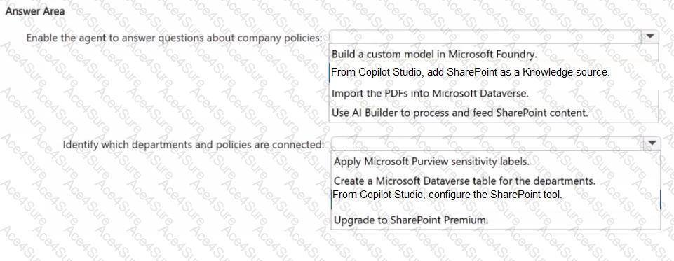 You need to design a Copilot Studio agent that will use the SharePoint library as a knowledge source. The solution must meet the following requirements: