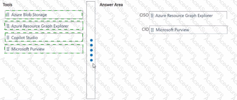 Which tools should you recommend to assist the CISO and the CIO with their specific responsibilities? To answer, drag the appropriate tools to the correct executives. Each tool may be used once, more than once, or not at all. You may need to drag the split bar between panes or scroll to view content.