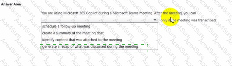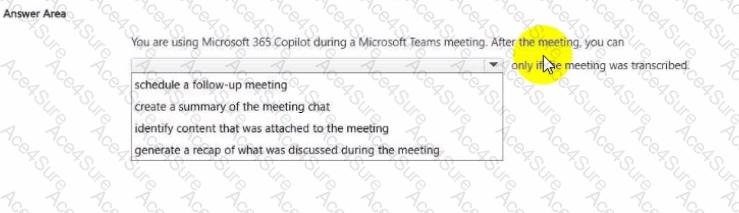 Other options such as scheduling a follow-up meeting or identifying attached content do not depend on transcription, as they rely on calendar data or meeting metadata rather than conversational analysis. However, summarization and recap capabilities are directly tied to the transcript.
