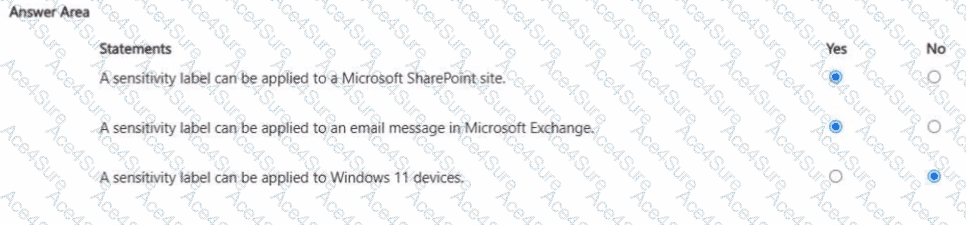 For each of the following statements, select Yes if the statement is true. Otherwise, select No. NOTE: Each correct selection is worth one point.