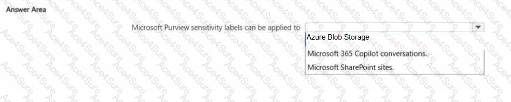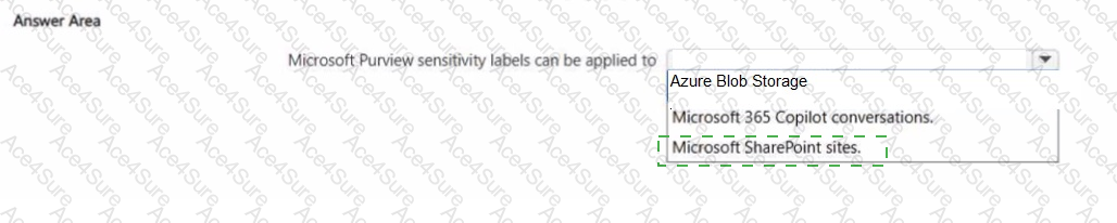 The other options are not the best match for this item. Microsoft 365 Copilot conversations are not the standard object to which admins directly apply a sensitivity label in the way this question is asking. Copilot can honor labels on source content and may display label context in responses, but the selectable resource here is not “Copilot conversations.” Azure Blob Storage is also not the intended answer in the Microsoft 365 Copilot and Agent Admin context for Purview sensitivity labels.