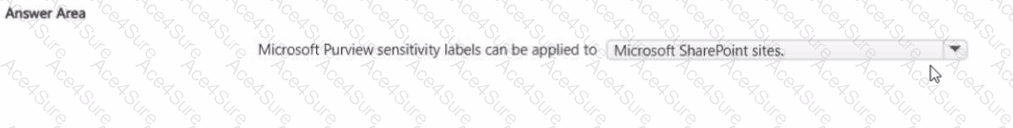 So for this hotspot, the sentence is correctly completed with Microsoft SharePoint sites , because Microsoft explicitly supports applying Purview sensitivity labels to SharePoint sites as a container-level labeling capability.